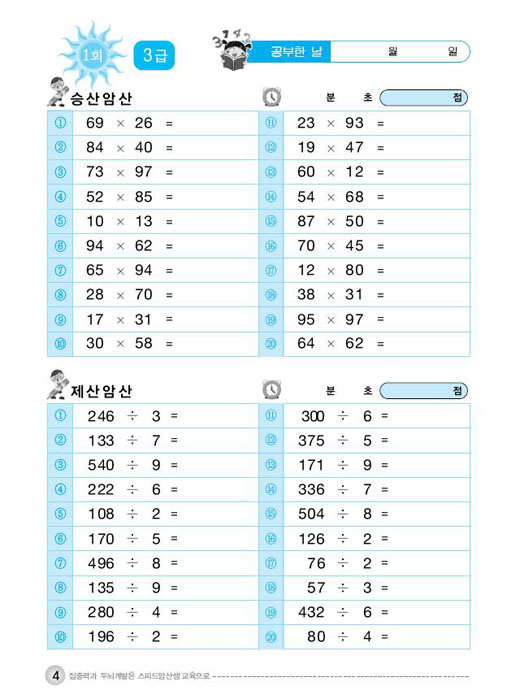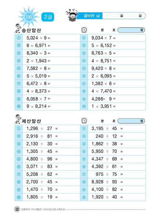 승산(곱셈)과 제산(나눗셈) 문제입니다.
