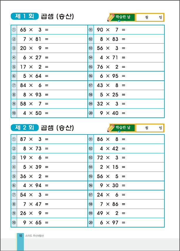 곱셈(승산) 기초 입문과정을 학습할 수 있는 교재입니다.