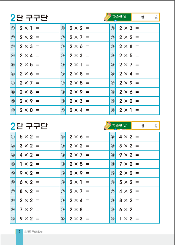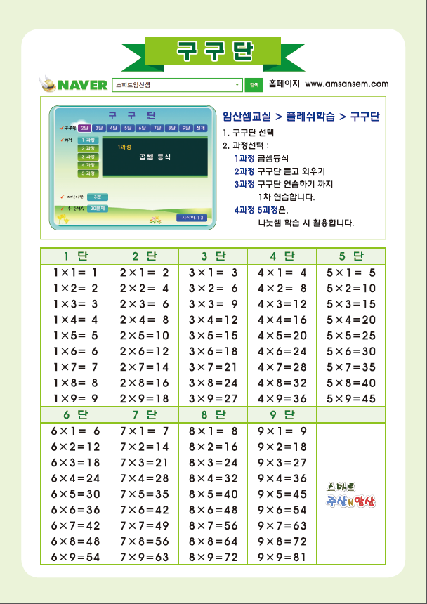 곱셈 승산 기초 입문과정 구구단과 구구단 연습문제와