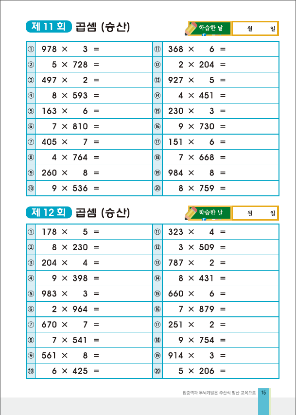 곱셈승산(기초입문2×1자리3×1자리)